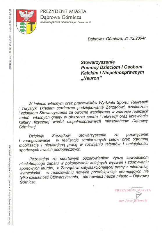 Prezydent miasta Dąbrowa Górnicza, Grudzień 2004