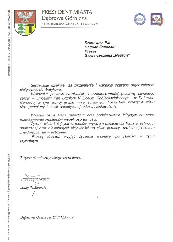 Prezydent miasta Dąbrowa Górnicza, Listopad 2005