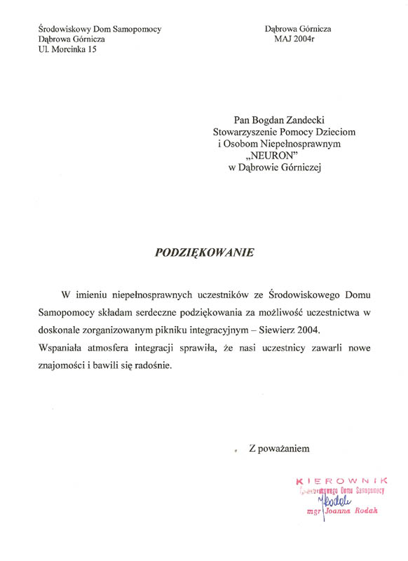 ¦rodowiskowy Dom Samopomocy, Maj 2004