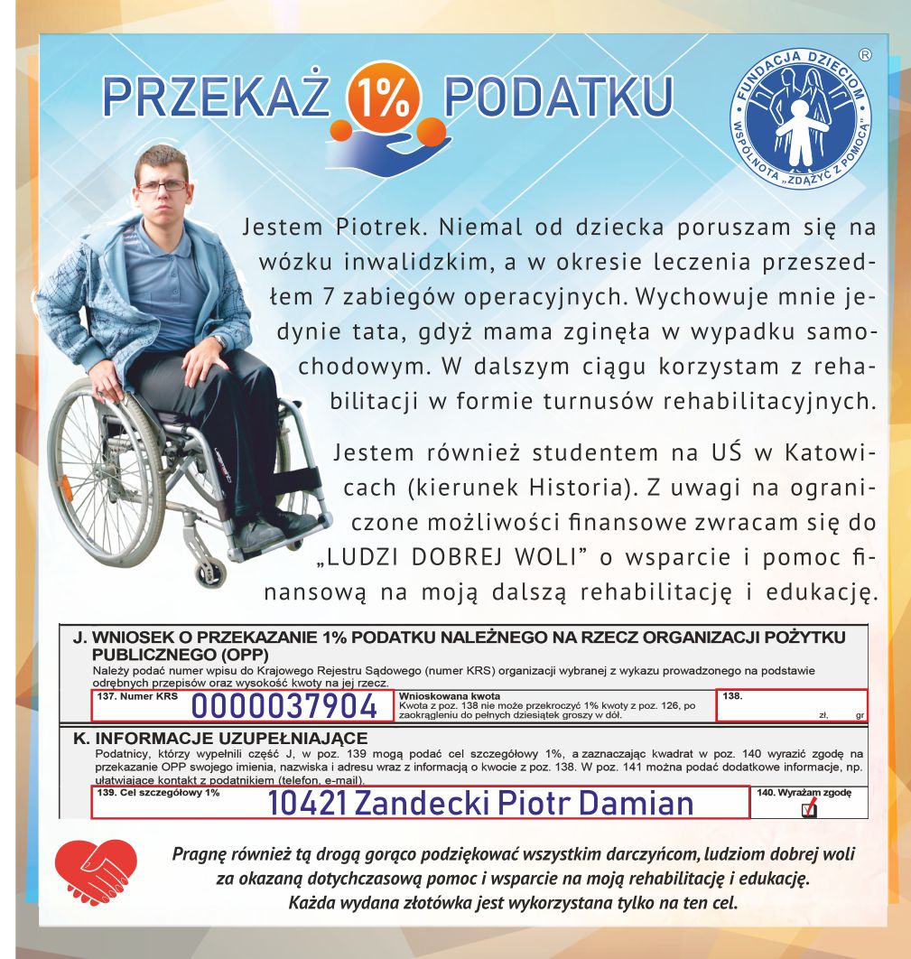 DziÅ› prezentujemy apel Piotra Zandeckiego, który zbiera Å›rodki na konto Fundacji „ZDĄŻYĆ Z POMOCÄ„” w której jest czÅ‚onkiem.