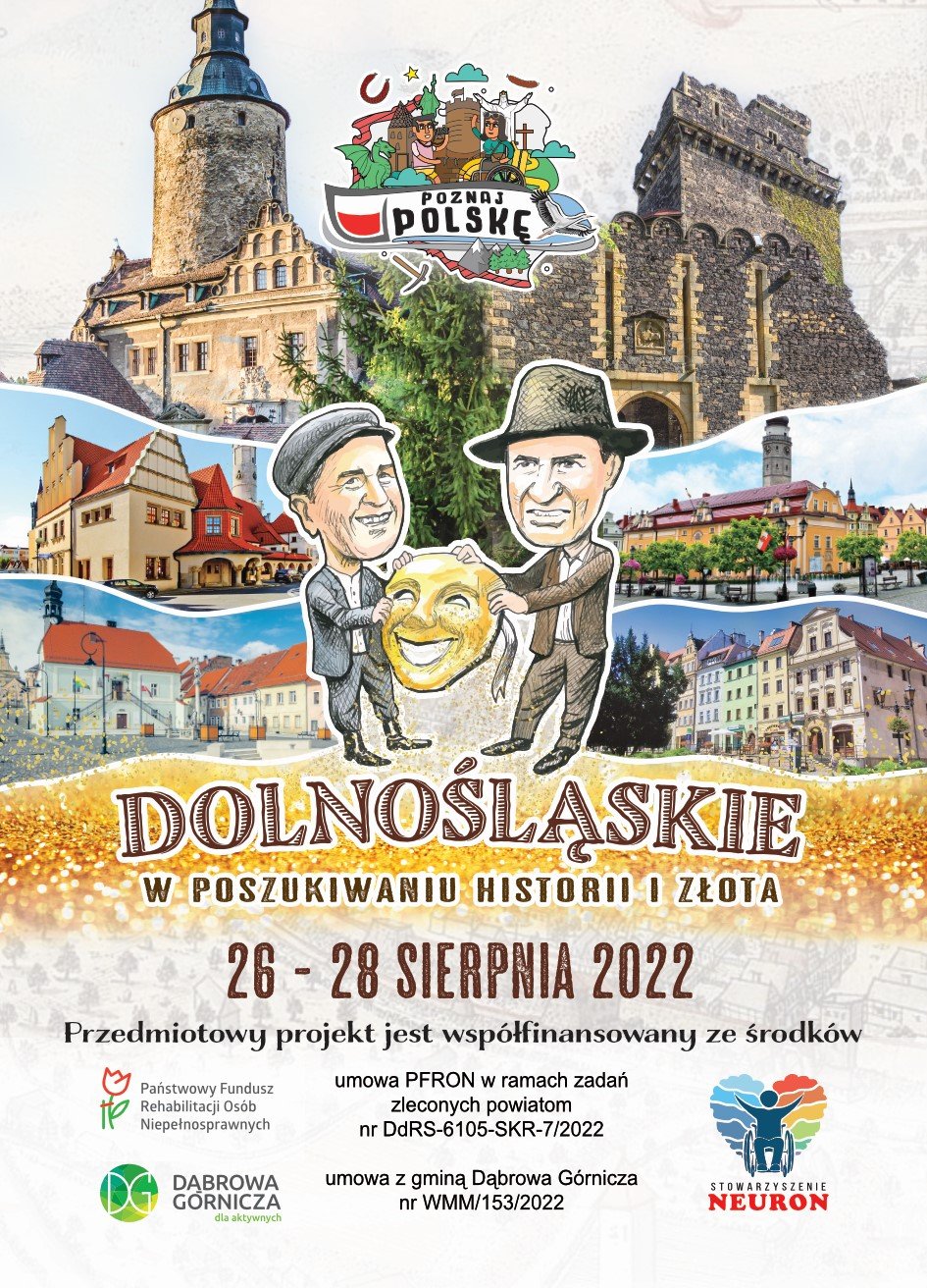 Zapraszamy wszystkich uczestników wycieczki "DolnoÅ›lÄ…skie w poszukiwaniu historii i zÅ‚ota" na spotkanie podsumowujÄ…ce projekt. Spotkanie odbÄ™dzie siÄ™ w dniu 11 października 2022 o godzinie 17:00 w Centrum AktywnoÅ›ci Obywatelskiej przy ul. Sienkiewicza 6a w DÄ…browie Górniczej. Każdy z uczestników przedmiotowej imprezy podczas spotkania otrzyma prezent niespodziankÄ™.