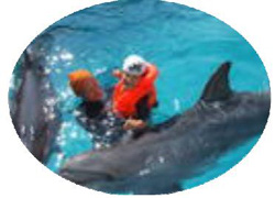 Delfinoterapia to forma połączonej terapii – aqua i animaloterapii, podczas której pacjent znajduje sie w bliskim kontakcie z delfinem. Terapia polega na wspólnym pÅ‚ywaniu i zabawie, podczas której osoby niepeÅ‚nosprawne wykonujÄ… szereg, dostosowanych do indywidualnych potrzeb i możliwoÅ›ci, ćwiczeÅ„ z udziaÅ‚em delfinów. W czasie tych zabaw wiÄ…zki ultradźwiÄ™ków emitowane przez delfiny przenikajÄ… przez ludzkie tkanki powodujÄ…c drobne korzystne zmiany w zniszczonych komórkach. Delfiny ciekawi u czÅ‚owieka wszystko, co odbiega od normy i tam wÅ‚aÅ›nie wysyÅ‚ajÄ… swoje ultradźwiÄ™ki regenerujÄ…c zniszczone komórki.