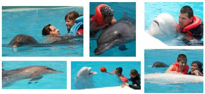 W trakcie zabawy terapeuty z dzieckiem w wodzie - dzieci z problemami ruchowymi i neurologicznymi uczÄ… sie pÅ‚ywać i nieÅ›wiadomie uprawiajÄ… najbardziej efektywna gimnastykÄ™ ruchowÄ…. Nathanson - amerykaÅ„ski lekarz, który odkryÅ‚ tÄ™ formÄ™ terapii zawsze podkreÅ›laÅ‚, że dziÄ™ki delfinom znika sterylny gabinet medyczny, który jest horrorem dla dziecka a zastÄ™pujÄ™ go basen. ZniknÄ…Å‚ też lekarz terapeuta w biaÅ‚ym wykrochmalonym kitlu powtarzajÄ…cy w kóÅ‚ko te same nudne ćwiczenia a na jego miejscu pojawiÅ‚o siÄ™ sie miÅ‚e w dotyku zwierze, zawsze chÄ™tne do zabawy, a co najważniejsze - z niezmiennie przylepionym do pyszczka wielkim uÅ›miechem.