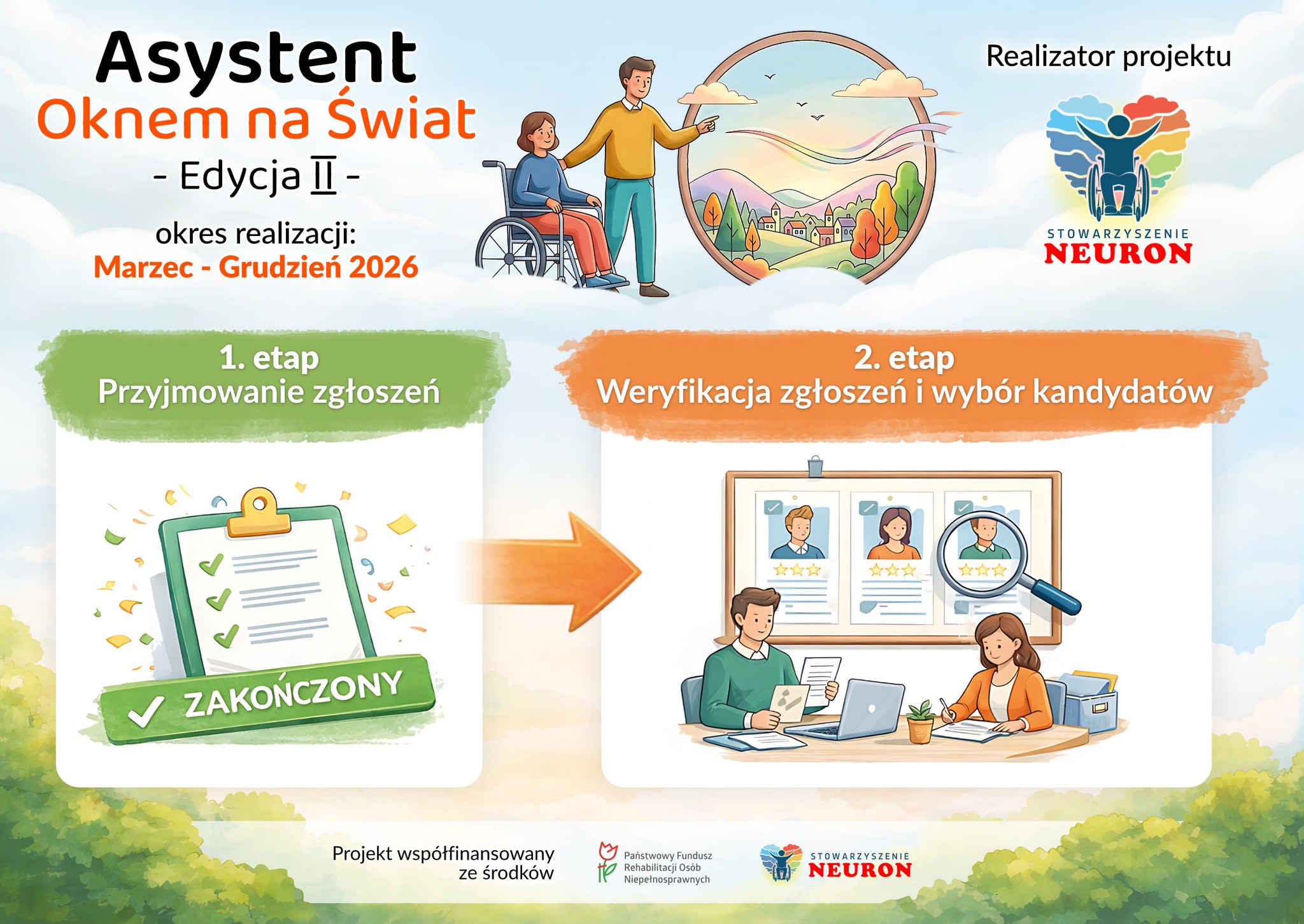 Od dnia 8 kwietnia 2026 r. rozpoczynamy drugi etap realizacji projektu, który obejmuje weryfikację wszystkich zgłoszeń oraz ustalenie listy uczestników na podstawie: